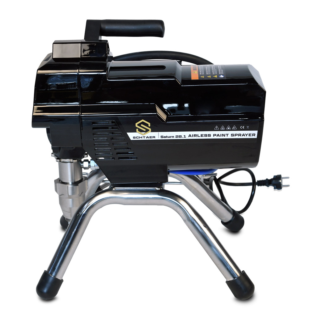 Schtaer Saturn 28.1 - окрасочный аппарат для внутренней покраски стен и потолков. Окрасочный аппарат безвоздушного распыления краски предназначен для строительной покраски, внутри и снаружи, также окрасочный аппарат можно использовать для покраски деревянных и металлических конструкций красками средней вязкости. Окрасочный аппарат работает от стандартной электрической сети, забирает краску из ведра и подает ее с помощью поршневого насоса на краскопульт для безвоздушного распыления.