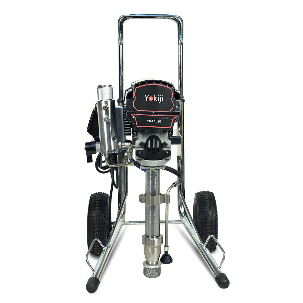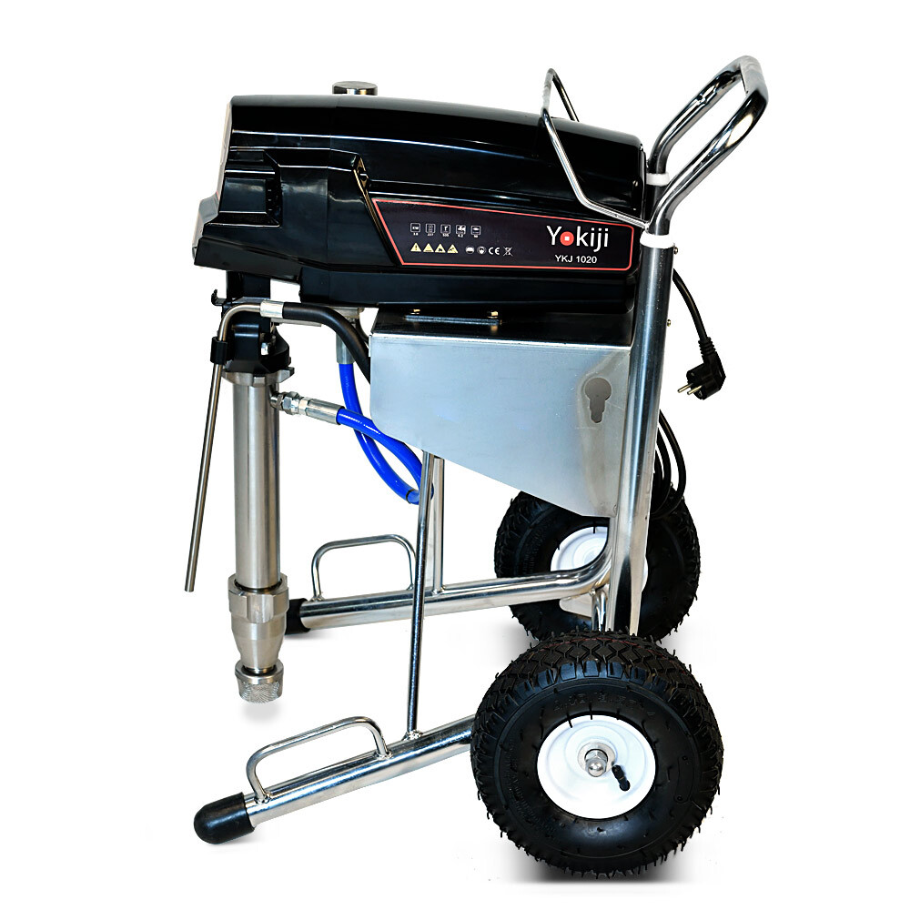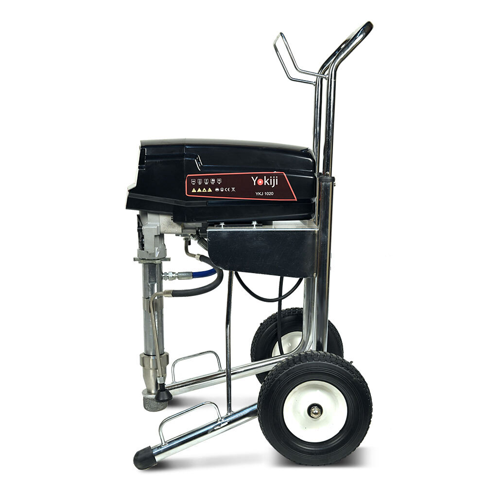 YOKIJI YKJ 1020 – окрасочный аппарат для распыления материалов низкой, средней и высокой вязкости; оснащен выходами на 2 малярных поста. Аппарат имеет высокую скоростью подачи материала - производительность до 6,2 л/мин., при этом более компактный размер и меньший вес по сравнению с аналогичными агрегатами. Подключение шланга возможно до 90 метров при работе материалами низкой и средней вязкости на 1 пост и до 45 метров на 2 поста.
